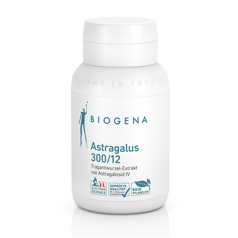 黄芪作为一种草本植物,原产于中国山区,属于豆科植物的一个亚科。黄芪根中积累着多糖和珍贵的黄芪皂苷,黄芪皂苷是一类属于黄芪根的三萜皂苷。黄芪成分对于免疫细胞有特殊作用。它们激活、调节免疫系统并抵消其衰老(免疫衰老)。 对于Biogena Astragalus 300/12而言,只加工其珍贵的根部。Biogena在使用这种经过验证的植物时的一个重要质量特征——因此,所用提取物的标准为每粒胶囊含150毫克多糖和12毫克黄芪皂苷IV。有了Biogena Astragalus 300/12,一种始终如一的高品质黄芪产品——您日常保健的理想补充剂。